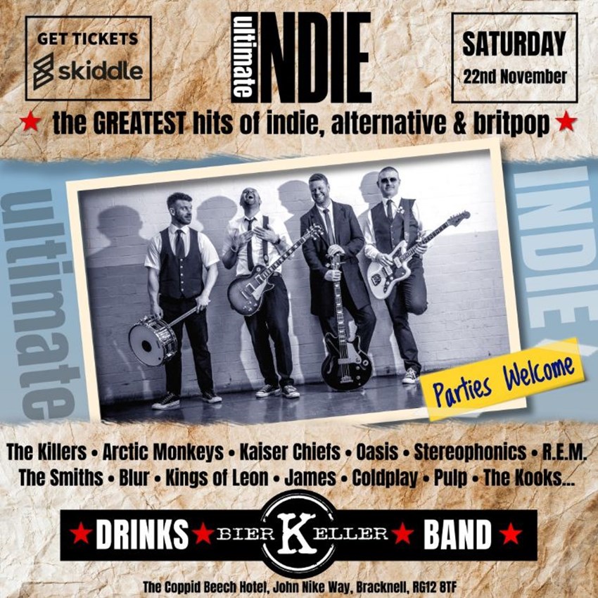 ULTIMATE INDIE – The GREATEST Hits of Indie & AlternativeUltimate Indie will be performing commercial Indie classics by The Killers, Arctic Monkeys, Kaiser Chiefs, Coldplay, Blur, The Smiths, Kings of Leon, Oasis, R.E.M, The Libertines, Stereophonics, The Courteeners, Pulp and many more…