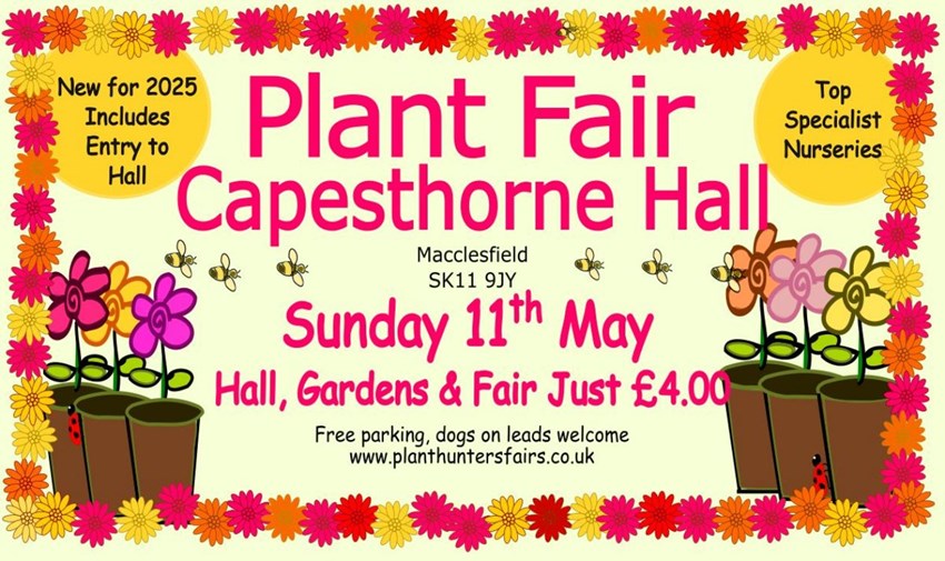 Spring Plant Hunters' Fair at Capesthorne Hall and Gardens Entry to Garden, Hall and Plant Fair all for just £4.00! Brilliant line-up of nurseries attendingCome for a great day out!