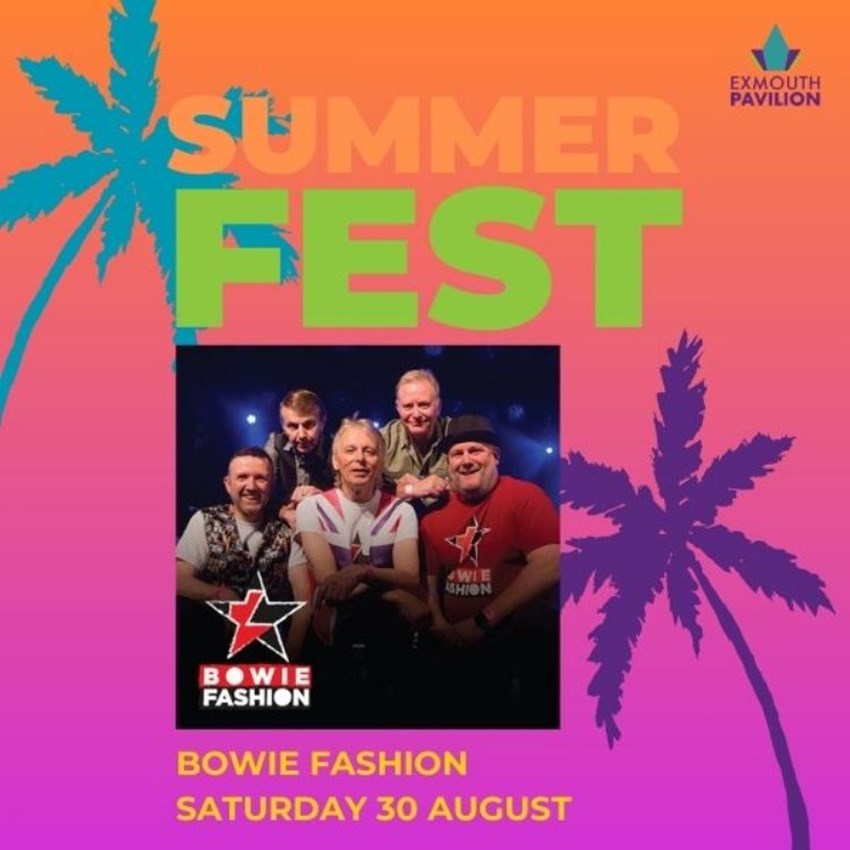 Enjoy free live music in Exmouth this summer as Exmouth Pavilion brings weekend performances to the Pavilion Gardens all completely free!A fabulous musical tribute, celebrating the unforgettable music of the iconic British superstar, David Bowie. This most authentic live show features Bowie Fashion performing all his best loved hits, including songs like: Life on Mars, Let's Dance, Space Oddity, Ashes to Ashes, Changes and many more. This is one show stopping Bowie extravaganza you do not want to miss!