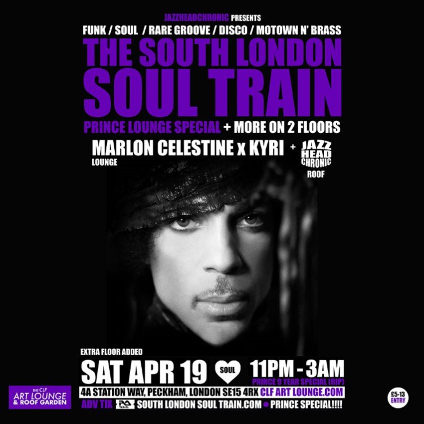 The South London Soul Train Prince Lounge Special Runs 11pm - 3amEntry £5-10 Adv from RA or £13 OTD at The CLF Art Lounge and Roof Garden