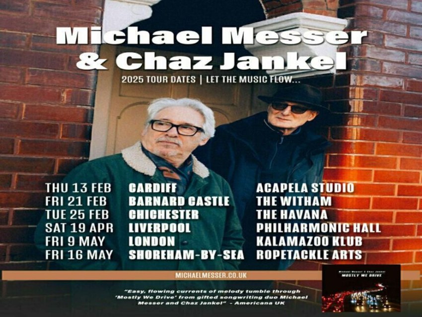 Virtuoso slide guitarist and songwriter Michael Messer (favourite of Johnny Cash) and multi-instrumentalist songwriter Chaz Jankel (Ian Dury and The Blockheads) released their debut album, Mostly We Drive – a finely crafted, lyrically inventive collaboration to universal acclaim.