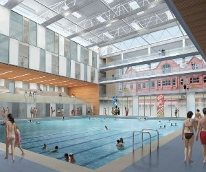 Swimming pool at Europa Pools in Birkenhead, Merseyside. Contact venue on 0151‐647 4182 for opening times and entrance costs.…