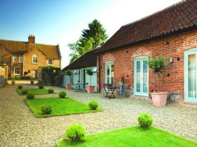 The Orangery is set in lovely grounds around one mile from the village of Thurning. This beautifully restored property is housed in restored red-brick outbuildings. Spacious family rooms open onto a terrace.