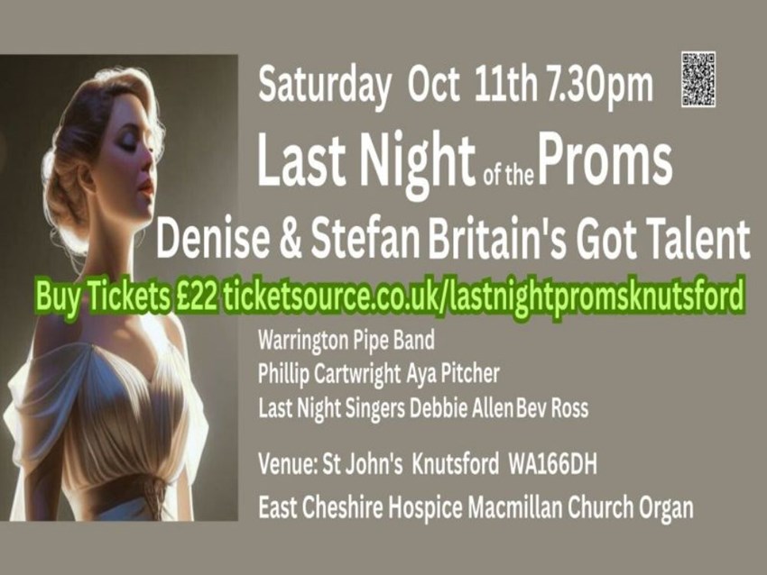This is our inaugaral LAST NIGHT OF THE PROMS in Knutsford and we have been lucky enough to have Denise Leigh as our Soprano. Denise was a last year semi finalist with husband Stefan Andrusyschyn in BRITAIN'S GOT TALENT and winner of Channel 4"s OPERATUNITY. She also starred in RIGOLETTO at the LONDON COLISEUM and sang at the opening ceremony for the LONDON PARALYMPIC GAMES. Denise performed for Classic FM LIVE AT the ROYAL ALBERT HALL. We are raising money for East Cheshire Hospice, Macmillan and the Church Organ Fund. The experienced Tenor, Phillip Cartwright, will sing with Denise and they are accompanied by Stefan on piano with support from the Last Night Singers. Stefan was also trained in classical accordion by Professors Oleg Sharov ,St. Petersburg Conservatory and Owen Murray, Royal Academy of Music, London and will mesmorise us with a solo piece. The Warrington Pipe Band will perform a haunting composition of Last of the Mohicans with Bev Ross on viola and Aya Pitcher on Pipe Organ. Dress to impress!