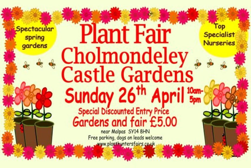 Spring Plant Hunters' Fair at the wonderful Cholmondeley Castle Gardens with a special reduced entry charge for the gardens and plant fair of just £5.00 (children 5-15 £2.50)Why not bring your friends and family to make a day of it!