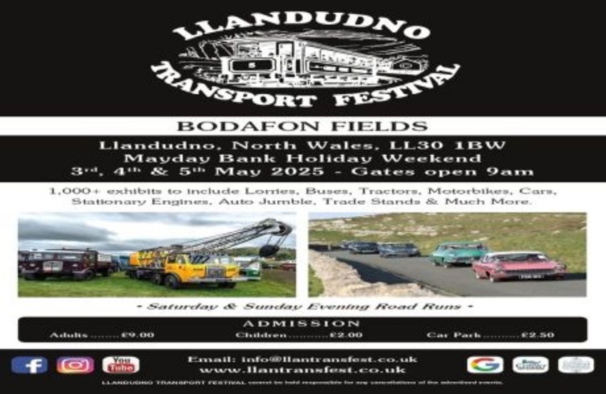 Join us at the Llandudno Transport Festival! Enjoy classic vehicles, exciting displays, and family-friendly activities.