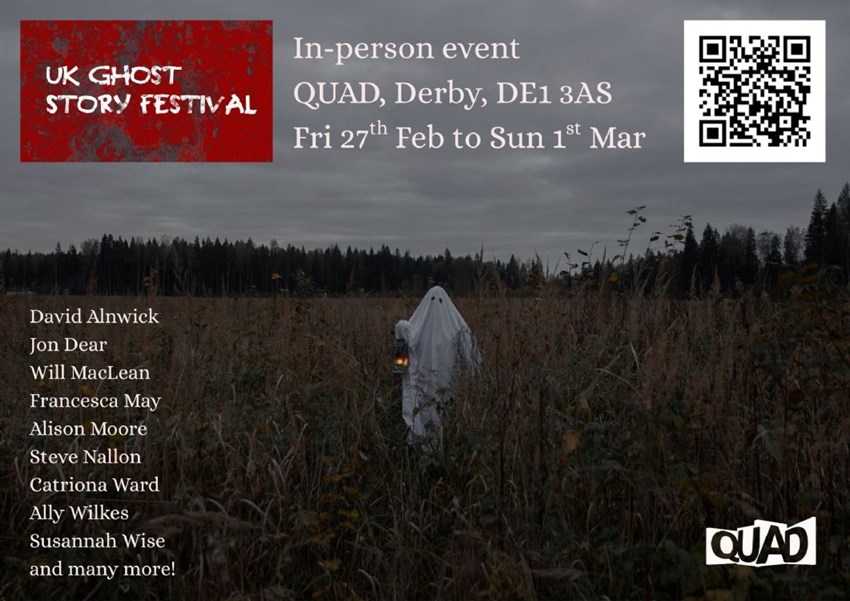 UK GHOST STORY FESTIVAL 2026 Friday 27th Feb to Sunday 1st March QUAD, Market Place, Derby, DE1 3AS Tickets from https://www.derbyquad.co.uk/ukgsf/The UK Ghost Story Festival is back once again, and 2026 will see its sixth spooky season of interviews, writing workshops, panels, talks and more with some of the UK’s leading writers and experts in the field! Returning to its ‘spiritual’ home of QUAD, this year’s event runs from the 27th Feb to the 1st March, with three days of loaded activity perfect for aspiring authors, rapacious readers and fans of all things ghoulish and ghostly! As always, we have full event and Saturday passes available, offering great value for anyone looking to take in the full array of events, with individual tickets available to each of the 38 events over the weekend.