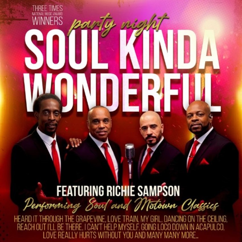 The UKs no.1 award winning tribute to The Drifters, The Four Tops and The Temptations. Thoroughly re live that splendid era with Soul Kinda Wonderful, this is Soul and Motown at its very best with a host of classic tracks from the above mentioned artists and other greats such as Marvin Gaye, Barry White, Lionel Ritchie, Billy Ocean, and Hot ChocolateLead vocalist, Richie Sampson, has performed alongside former long standing members of The Drifters, such as Ray Lewis, Billy Lewis, Butch Leak and Roy Hemming’s at various times. The band breathes new life in to the classic hits such as ‘Under the Boardwalk’, ‘Save the Last Dance for Me’, ‘Up On The Roof'