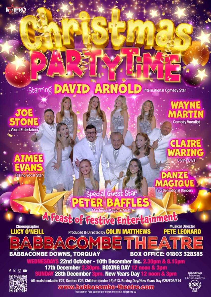 Your quick-witted host David Arnold keeps the fun flowing, joined by comedy magician Peter Baffles, plus superb vocalists Claire Waring, Wayne Martin, Aimee Evans, and smooth Christmas crooner Joe Stone. Adding extra sparkle, the dazzling Danze Magique dancers light up the stage with festive flair. Expect a playlist of timeless hits from Queen, Cher, Lionel Richie, Fleetwood Mac, Stevie Wonder, Shania Twain, and showstoppers from Wicked and Hercules – with a dash of panto fun… oh yes there is! Join us at the Babbacombe Theatre, where the Christmas cheer starts early and lasts well into the New Year. PLEASE NOTE: When booking online a £3 per ticket transaction fee is applied and when booking by telephone £2 per ticket transaction fee is applied. Box office: 01803 328385 Website: www.babbacombe-theatre.com Email: info@babbacombe-theatre.com The theatre has: · Access for the disabled with a disabled toilet · Wheelchair spaces · Loop SystemHotels near Babbacombe Theatre