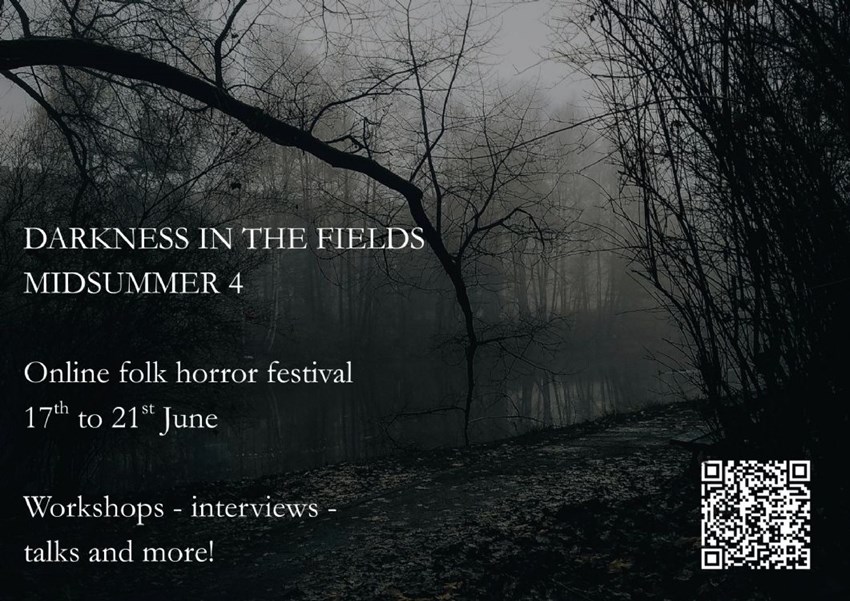 DARKNESS IN THE FIELDS: MIDSUMMER 4 ONLINE FOLK HORROR FESTIVAL Wednesday 17th June- Sunday 21st June 2026 Tickets from https://www.eventbrite.com/e/darkness-in-the-fields-midsummer-4-tickets-1980701107331Online via Google Meet - EVENT LINKS WILL BE SENT TO YOU BY EMAIL. Please look out for an email from alexdavisevents@hotmail.co.uk with all the info - sometimes these messages can be sent to junk/spam!