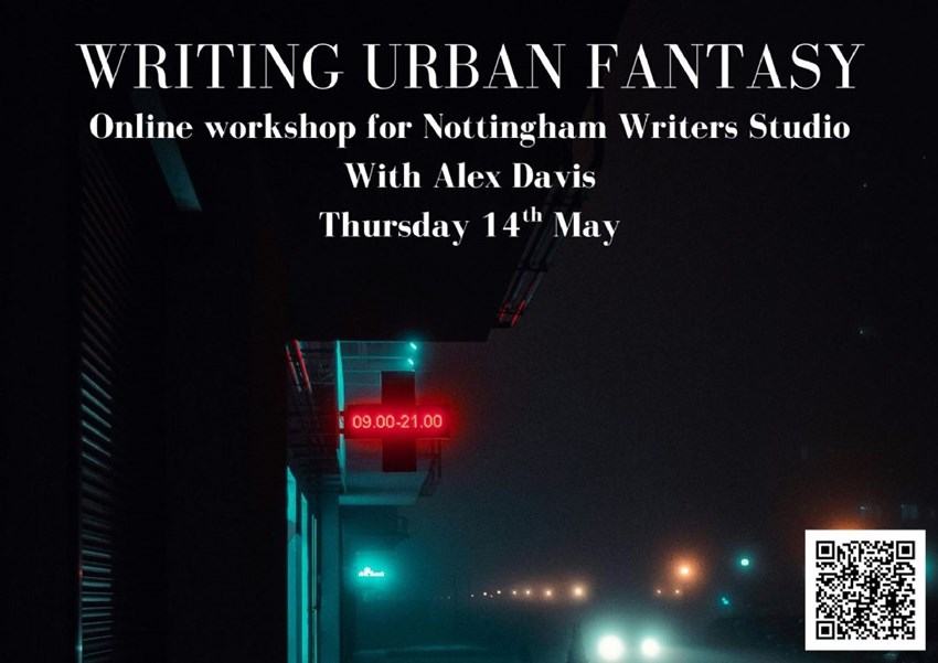 Writing Urban Fantasy Online writing workshop from Nottingham Writers Studio Thursday 14th May, 6:30pm-8:30pm (UK time) Tickets and info at https://www.eventbrite.co.uk/e/writing-urban-fantasy-with-alex-davis-tickets-1985363409402In this writing workshop, we'll be exploring the exciting and fantastical world of Urban Fantasy, which seeks to bring the creatures of horror and epic fantasy into the real world. This session will look at examples of the genre, techniques to help you write within the field and exercises to send you away with fresh concepts and ideas.