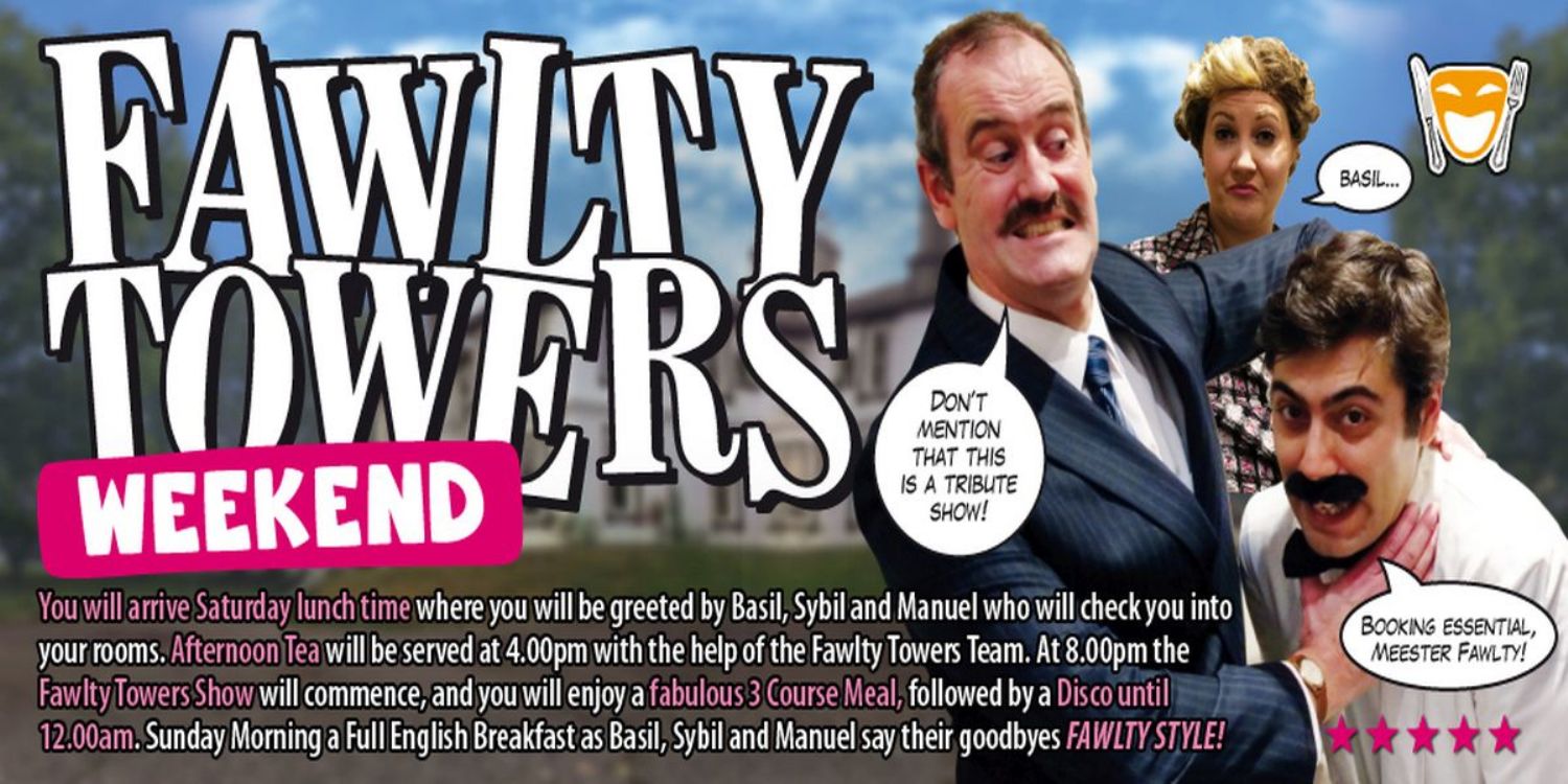 . You will arrive Saturday lunch time where you will be greeted by Basil Sybil and Manuel who will check you into your rooms.Afternoon Tea will be served at 4.00pm with the help of the Fawlty Towers Team. At 8.00pm the…