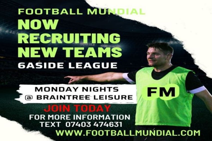 6 A SIDE FOOTBALL LEAGUE HELD IN BRAINTREE..... TEAM SPACE AVAILABLE