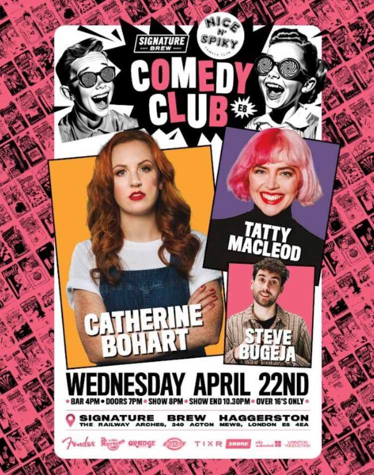 . Comedy Works In Progress with Catherine Bohart Tatty Macleod and Steve Bugeja Over 16s Only In association with Nice N Spiky Comedy.In the unlikely event that an artist needs to cancel we reserve the right to amend the line up…
