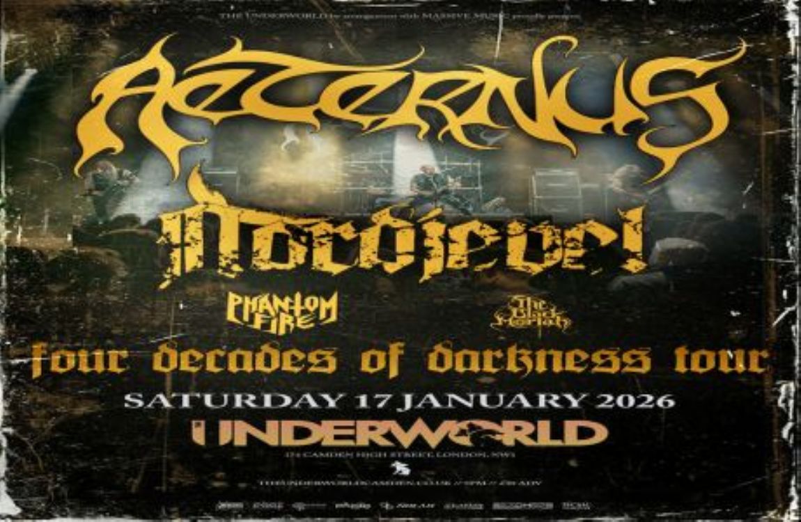 .Dark metal descends on London ‐ AETERNUS ‐ FOUR DECADES OF DARKNESS TOUR with very special guests NORDJEVEL plus PHANTOM FIRE and THE BLACK MORIAH.Tickets https:tinyurl.comUWaeternus17:00 £30 adv.‐‐‐‐‐‐‐‐‐‐‐‐‐‐‐‐‐‐‐‐‐‐‐‐Join us for the after party from 11pm to 3am at The Underworlds Camden…