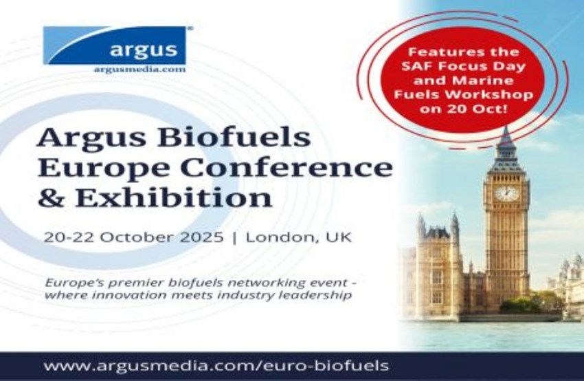 The flagship Argus Biofuels Europe Conference and Exhibition returns to London on 20-22 October 2025. Join over 700 senior industry leaders