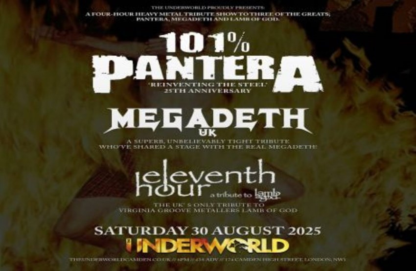 A four-hour night paying tribute to three icons of the heavy metal world, featuring 101% PANTERA, MEGADETH UK and ELEVENTH HOUR.