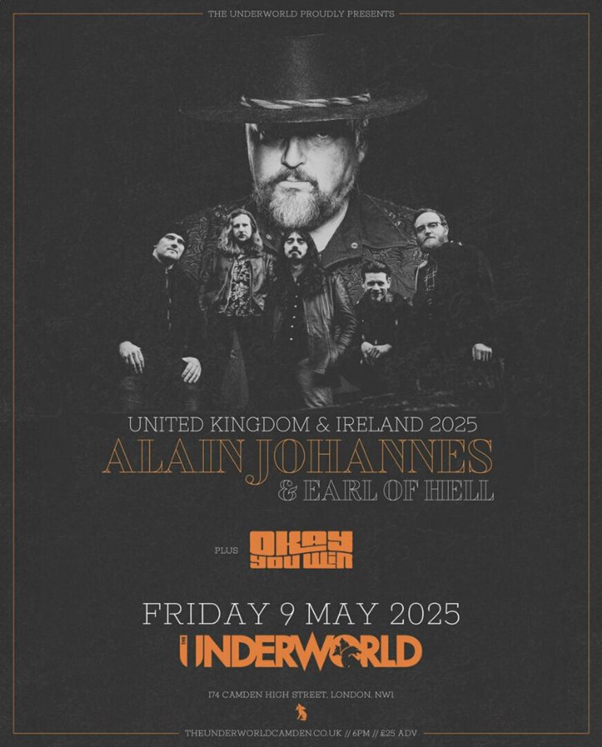 Rock royalty ALAIN JOHANNES returns to London, joined by EARL OF HELL and OKAY YOU WIN.