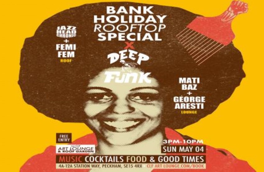 2 FLOOR BANK HOLIDAY SUNDAY SPECIAL / FREE ENTRY! Sun May 04 (3pm-10pm / Free Entry) - It's May Bank Holiday weekend, time to "day time party and get down" across 2 righteous floors at The CLF Art Lounge and Roof GardenSouth London Soul Train Host JAZZHEADCHRONIC joined by the Legendary FEMI FEM for an eclectic funk, soul, disco, breaks, beats and brass session UP ON THE ROOF - Strictly vinyl DJs MATI BAZ and GEORGE ARESTI delivering a delicious dancefloor heavy helping of DEEP FUNK, soul, boogie, latin and beyond, well deep in our speakeasy LOUNGEFREE ENTRY! Expect good times galore and dance space aplenty as we invite you to chill, eat, drink and seriously, positively let loose all afternoon-evening longNo work on Monday folks, so let's ave it!ROOF - JAZZHEADCHRONIC x FEMI FEM (3pm-10pm)