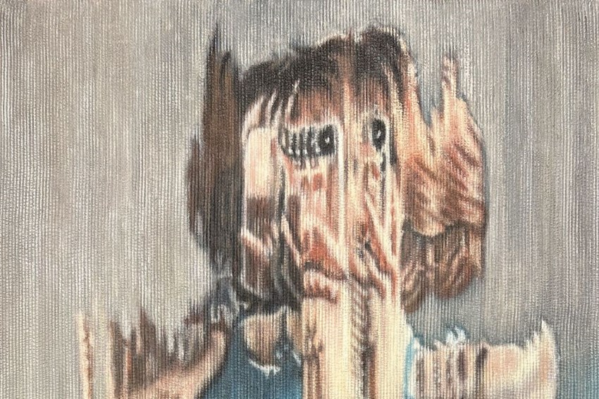 His works unfold in the space between these poles, translating the technical errors of our media-saturated era into gestures of painterly intimacy.A former fashion designer, Hesse approaches painting as both fabric and image. The surface — sometimes corduroy, sometimes bouclé — is never neutral; it recalls texture, touch, and wear. These tactile foundations become the site where the “glitch” appears: not as a mistake, but as a revelation. What the screen hides behind its promise of seamless perfection, Hesse reveals through brushstrokes, layering, and distortion. His portraits and figurative scenes seem at once familiar and disturbed. Pixels bleed into brush marks; compression lines cut across faces; digital interference coexists with the softness of oil and textile fibers. These works do not imitate technology — they expose its fragility. By transforming visual defects into painterly language, Hesse reclaims the human presence within the technological gaze. The exhibition’s title, Glitch & Glamour, evokes this duality. “Glamour” — the polished image, the seductive surface — meets “glitch”, the breakdown that disrupts illusion. Hesse situates beauty within the fault line between these states. In doing so, he reminds us that imperfection is not the opposite of glamour but its hidden core: the shimmer that occurs precisely when control falters. In an age obsessed with clarity, correction, and resolution, Hesse’s paintings invite us to dwell in ambiguity. They ask us to look again — not for perfection, but for presence. Within the glitch, we find the trace of the hand, the residue of the body, the persistence of the real. Perfectly imperfect.