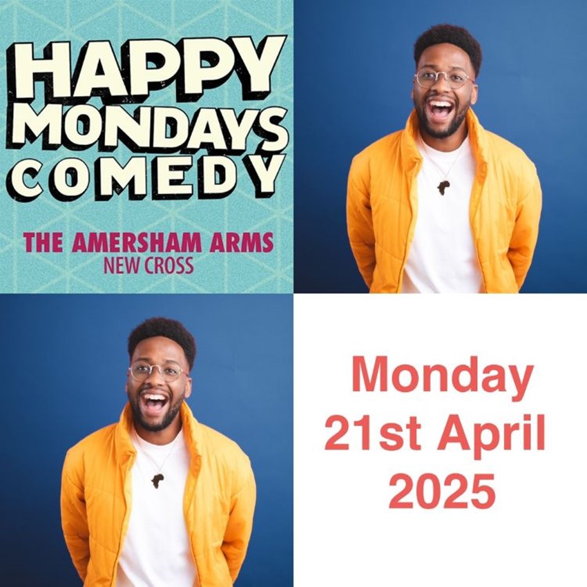 Happy Mondays Comedy bring you fantastic line up of ALL DAY previews and work in progress shows of brill comedy talent for EASTER MONDAY SPECIAL including the wonderful comedy talents of ALI WOODS -Star of Comedy Central and Stand-Up Sketch Show, Hundreds of millions of views on Instagram and TikTok"In a world of wannabes, Woods is the real deal." (Bruce Dessau, Evening Standard), MARK THOMAS -The UK's finest political comedian, none other than the legendary Mark Thomas! "Thomas is a terrific performer and raconteur, and he has the gift of making an instant community out of a group of strangers." – The Guardian, hotly tipped CARWYN BLAYNEY Welsh Unsigned Stand Up of the Year 2024 , KATIE NORRIS -Winner of Leicester Comedy Festival Best Show 2025,'Tremendous..Wonderfully batty and unapologetic' **** The Guardian TADIWA MAHLUNGE -As seen on BBC 1, BBC 2, Dave, Comedy Central and more..'Fearless' (Daniel Kaluuya)'Impressive' (The Guardian)providing the lols all hosted by your cheeky charming compere Sion James at the ever popular Amersham Arms New Cross ( Across the Road from New Cross station)