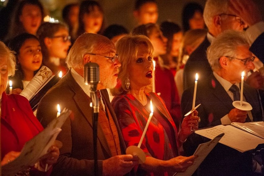 Dame Joanna Lumley kicks off the festive season at charity Candlelit Christmas Concert to help children facing starvation in Darfur, Sudan.