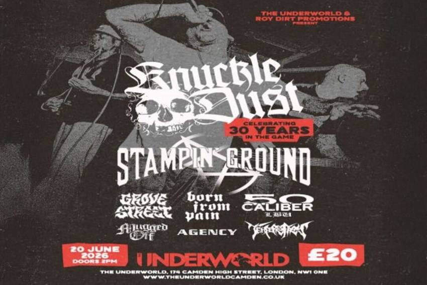 UK Hardcore stalwarts Knuckledust - CELEBRATING 30 YEARS IN THE GAME with very special guests Stampin' Ground plus Grove Street, Born From Pain, 50 Caliber, TEMPERS FRAY, Agency and Mugged Off, live at The Underworld, Saturday 20 June 2026
