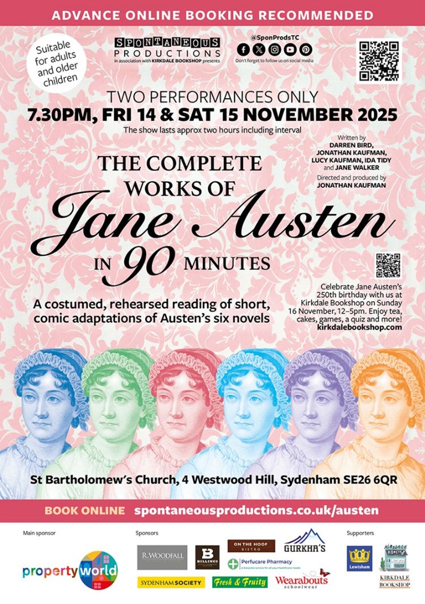 Performed script-in-hand by the professional cast of Sydenham’s Spontaneous Productions, this witty and fast-paced adaptation brings Austen’s timeless tales to life for a modern audience.