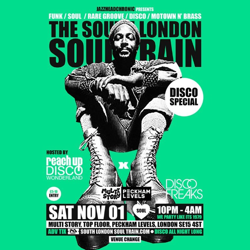 VENUE CHANGE / NOW AT MULTI STORY (Top floor PECKHAM LEVELS)! Sat Nov 01 - The South London Soul Train presents another righteous DISCO Battle Royale, as we welcome serious heavyweight Discophiles and good time music lovers REACH UP DISCO WONDERLAND DJs ANDY SMITH + NICK HALKES x DISCO FREAKS deep In session. A celebration of D-I-S-C-O! All Night Long, now taking place at the new main auditorium warehouse space MULTI STORY, top floor PECKHAM LEVELS.