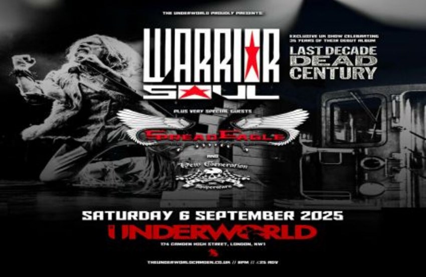 WARRIOR SOUL, featuring original members KORY CLARKE and JOHN RICCO, are thrilled to be playing this exclusive extra special show at the iconic CAMDEN UNDERWORLD in LondonAlso, joined by special guests SPREAD EAGLE and NEW GENERATION SUPERSTARS