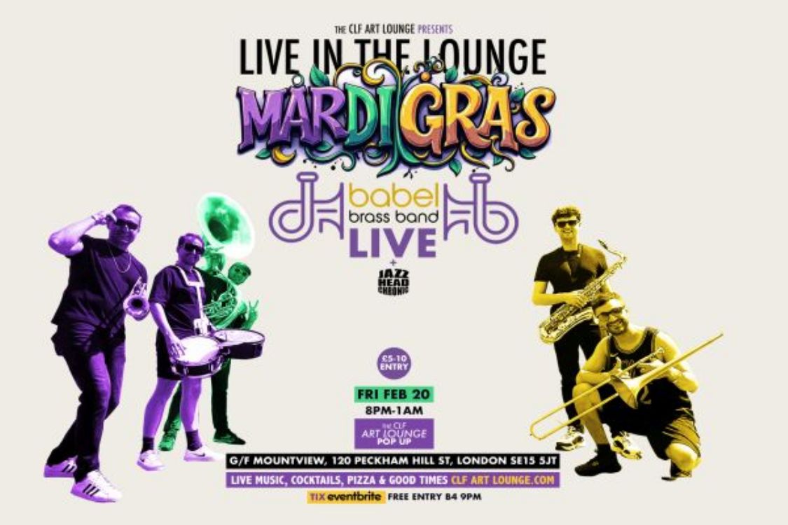 .LIVE IN THE LOUNGE MARDI GRAS SPECIAL WITH BABEL BRASS BAND Fri Feb 20 8pm‐1am ‐ Its New Orleans Mardi Gras time to drop an Impromptu Live In The Lounge Mardi Gras Special celebrating the life light sounds and spirit of the…