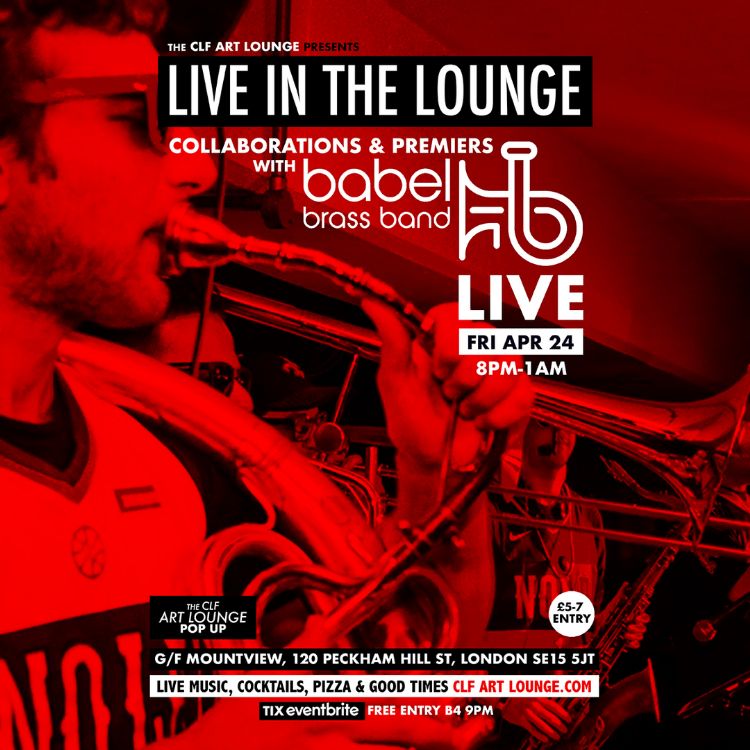 . RESCHEDULED BABEL BRASS BAND LIVE IN THE LOUNGE Fri Apr 24 8pm‐1am Free Entry B4 9pm ‐ Live In The Lounge welcomes the well hot musical stylings of the mighty BABEL BRASS BAND LIVE. BB dropping a special evening…