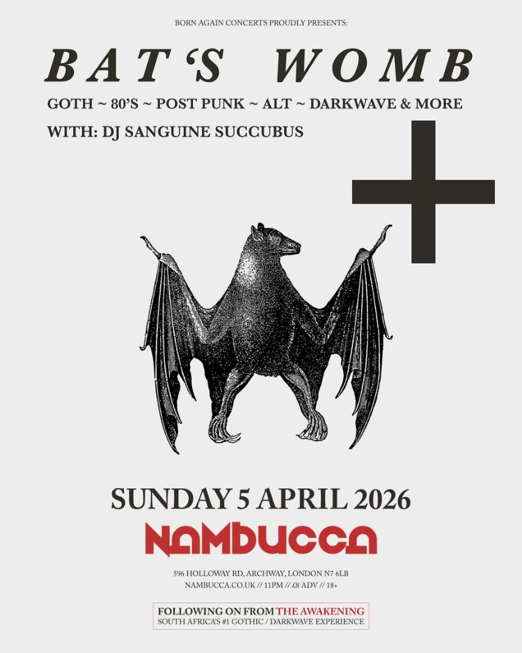 . Darkness over London as South Africas 1 Gothic Darkwave experience THE AWAKENING hit Nambucca joined by special guests GHOST DANCE and BLACK LAKES bank holiday Sunday 5th April 2026.GIG https:link.dice.fmCc7f6de60861The night will continue on from 11pm hosted by Bats…
