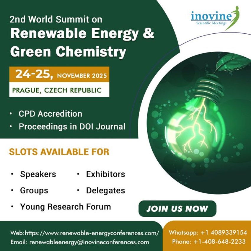 This conference provides a unique opportunity to connect with experts, share insights, and collaborate on solutions to pressing challenges in Renewable Energy and Green Chemistry.