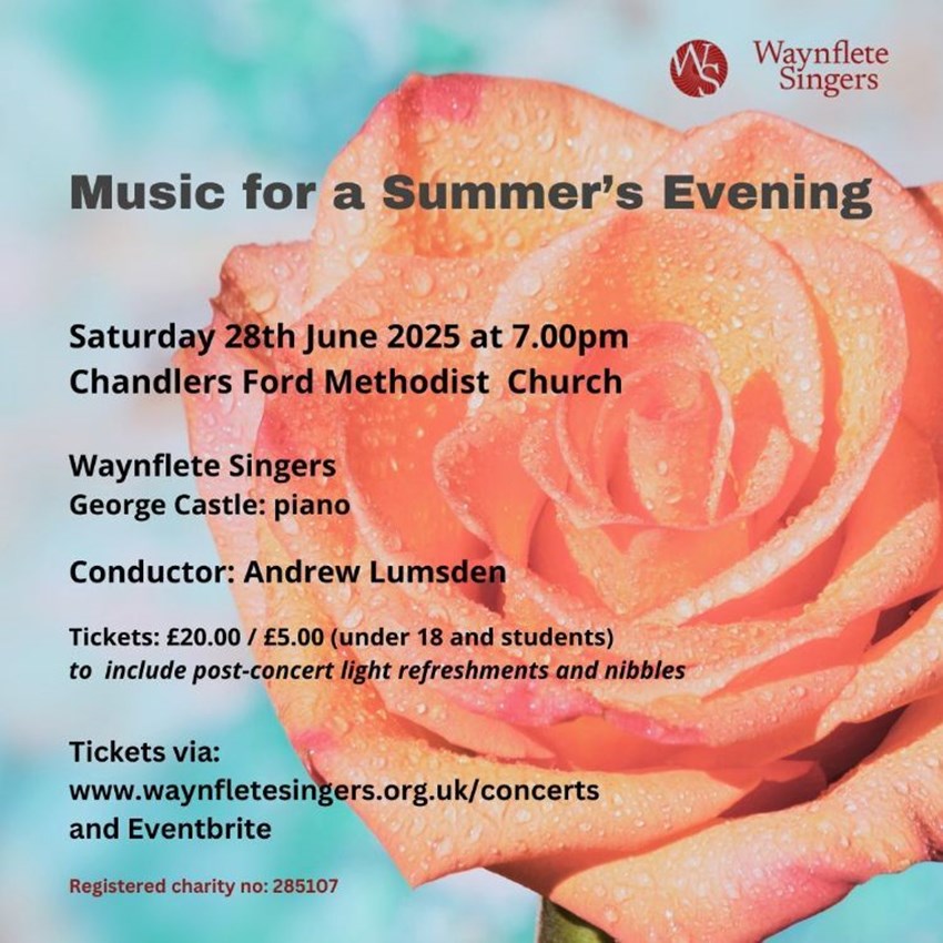 Come and enjoy an evening of beautiful Summer music, with a medley of part-songs, madrigals and musical theatre with choruses from Les Miserables, and all complete with a dash of jazz in Bob Chilcott's 'Little Jazz Madrigals'
