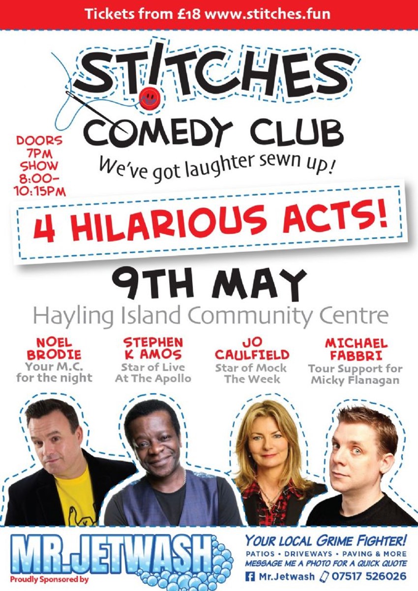 Don't miss this night of hilarity in the wonderful Hayling Community Centre, with great facilities, comfy seats, a great fully stocked bar and now hot food too!