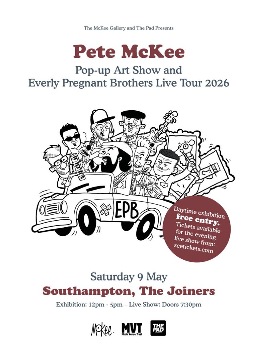 As well as a showcase of Pete’s artwork, the tour is also to raise awareness of the work Music Venue Trust do in helping to support our grassroots live music venues, the lifeblood of touring for new emerging artists.