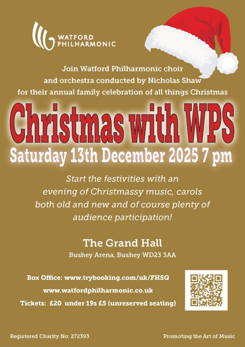 Join the choir and orchestra of Watford Philharmonic Society for an evening of traditional carols and contemporary Christmas songs and chances for you to join in and sing with us.