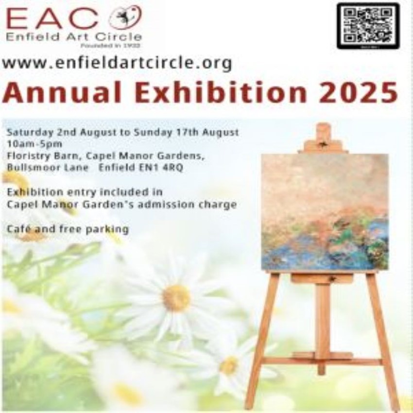 Enfield Art Circle's Annual Exhibition from 2nd to 17th August view over 30 artists artwork in the Floristry Barn
