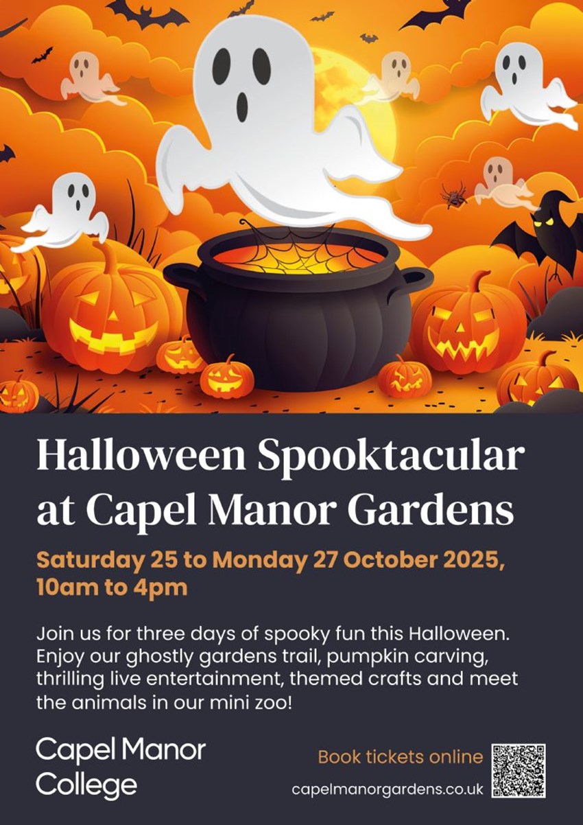Book tickets online now via the link: https://www.ticketsource.co.uk/whats-on/enfield-middlesex/capel-manor-gardens/halloween-spooktacular-at-capel-manor-gardens/e-mqygro
