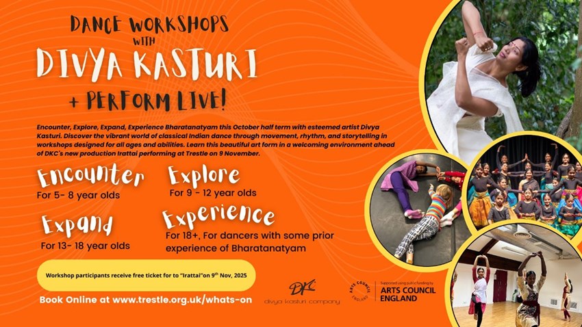 This October, take the opportunity to play, learn and enjoy Bharatanatyam with esteemed artist Divya Kasturi. This is ahead of DKC’s new production, Irattai, being performed at Trestle on 9 November 2025.