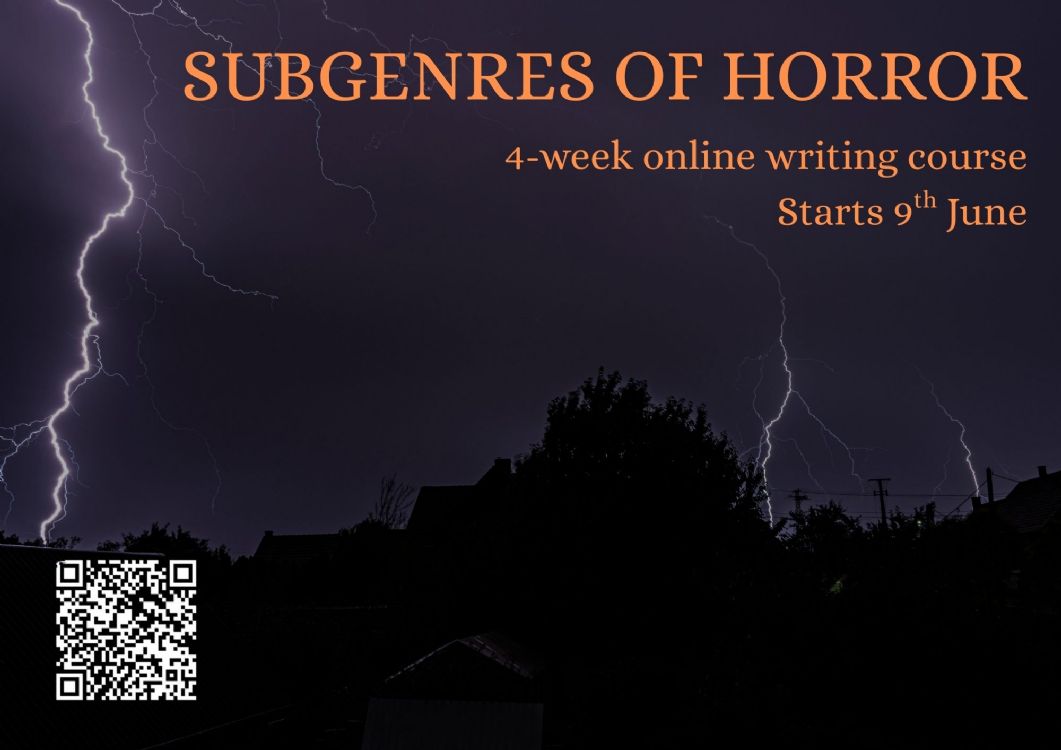 Subgenres of HorrorFour‐week course with Alex DavisTuesdays 6:30pm‐8:00pm June 9th to June 30thTickets £40 or £60 including author 1‐2‐1 from https:www.eventbrite.comesubgenres‐of‐horror‐tickets‐1980775876969Horror is a broad spectrum with a range of genres adopting all sort of approach to evoking fear. In this four‐week course…