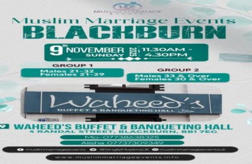 Join us for our upcoming Muslim marriage events on Sunday, 9th November 2025, at Waheed's Restaurant, 4 Randal Street, Blackburn, BB1 7EG