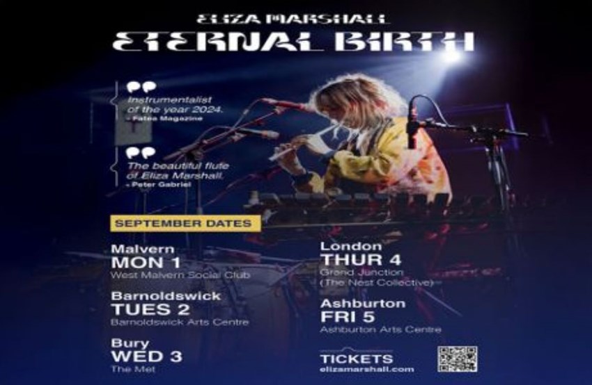 Step into a powerful world of sound and spirit as renowned cross-genre-flautist Eliza Marshall brings her debut solo projects New Birth and Eternal Birth to life on stage this Autumn2025 sees Eliza spring forth solo, from two decades of numerous collaborations, with her debut EP 'New Birth' released on Real World X in May, and her debut album 'Eternal Birth' coming this September