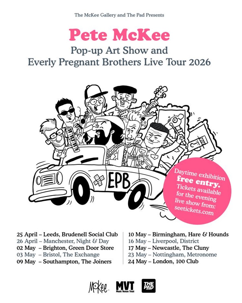 As well as a showcase of Pete’s artwork, the tour is also to raise awareness of the work Music Venue Trust do in helping to support our grassroots live music venues, the lifeblood of touring for new emerging artists.