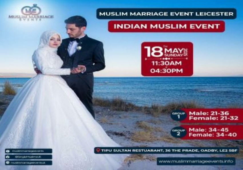 We are holding the next muslim marriage event on Sunday 18th May 2025 at Tipu Sultan Restaurant, 36 The Parade, Oadby, LE2 5BF.