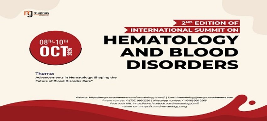 This hybrid hematology conference supports global participation through in-person and virtual formats. Centered on the theme “Advancements in Hematology: Shaping the Future of Blood Disorder Care”. The summit focuses on evolving research and clinical approaches in hematology. Key sessions include blood disorders, hematologic oncology, coagulation abnormalities, stem cell research, and transfusion practices. The program also explores diagnostic advancements, molecular hematology, and novel treatment strategies. By integrating clinical and translational research perspectives, Hematology 2026 encourages interdisciplinary collaboration and the exchange of current scientific knowledge in hematology.Reach us at: E-mail: hematology@magnusconference.com Phone: 1 (702) 988 2320 WhatsApp: +1 (640) 666-9566 Website: https://magnusconferences.com/hematology-blood/ Recommended: Hematology Conferences 2026 | International Hematology Summit 2026 | Hematology Conference | Blood Disorders Conference | Clinical Hematology Congress | Global Hematology Conference | Translational Hematology Conference | Hematologic Malignancies Congress | Precision Hematology Forum | Personalized Blood Disorder Medicine Symposium | Hematology Genomics Conference | Molecular Hematology Congress | Leukemia Conference | Lymphoma Congress | Multiple Myeloma Symposium