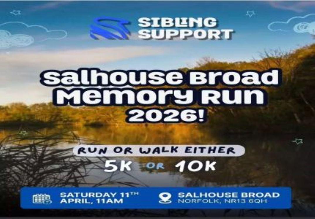 .Join us on Saturday 11th April 2026 for our Sponsored Memory Run at Salhouse Broad Norwich as we commemorate National Siblings Day and remember our siblings who have died. By raising much needed funds for Sibling Support youll be making a massive…