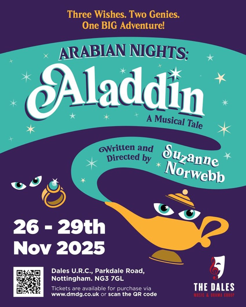 The Dales Music and Drama Group presents Arabian Nights: Aladdin, an original retelling of the story of Aladdin.