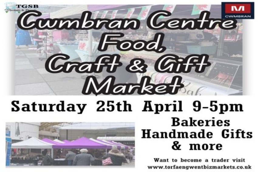 M Cwmbran Centre Food Craft and Gift Market - Saturday 25th April Join us at Cwmbran Centre on Saturday 25th April, 9am-5pm, for a vibrant Food, Craft and Gift Market filled with handmade treasures, delicious local produce, and unique finds from talented small businessesWhether you're treating yourself or searching for something special, this market brings together an exciting mix of traders offering quality food, crafts, gifts, home decor, clothing, and so much moreHighlights Free parking Local food traders Bakeries Handmade gifts Home decor Clothing And much more Discover something new, support local makers, and enjoy a fantastic day out - all in the heart of Cwmbran Centre